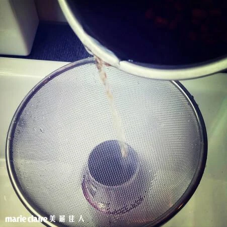 準備好濾杓,將煮好的紅豆水倒進保溫杯或水壺中,這樣一整天下來都可以喝到熱熱的紅豆水!