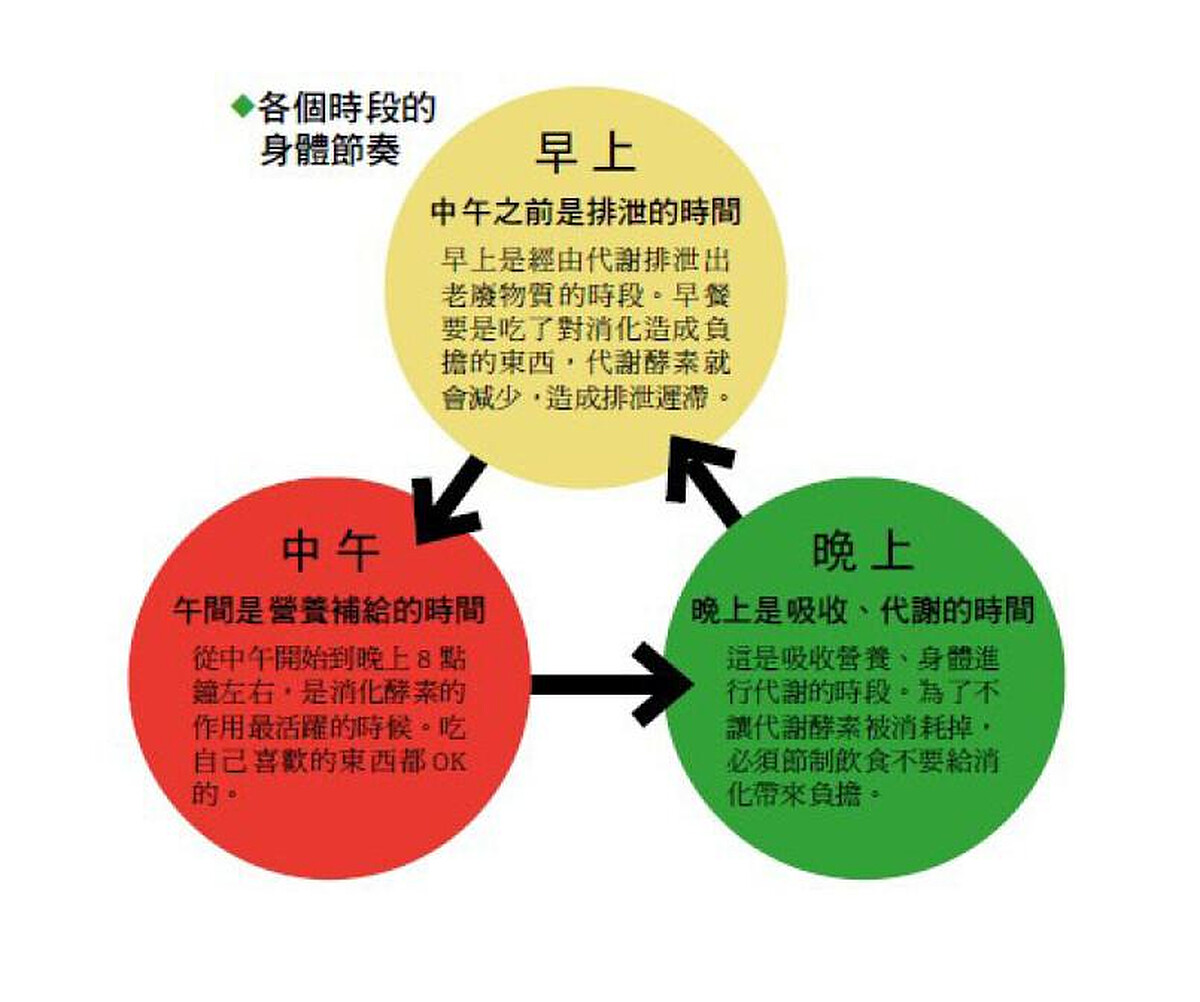 你有想過早上醒來喝一杯用蔬菜水果打成的果汁,如此簡單的習慣可以為你的身體、肌膚、心靈、帶來許多「良好影響」,真是令人訝異。但不可否認的在日本,許多開始喝晨間果汁的人確實感受到的事實。首先,就請你從持續一星期「每天早上一杯」開始。 身體一天代謝的節奏早晨是排泄時間,以果汁為中心對消化沒有負擔。中午是消化酵素活躍時間,就你吃自己想吃的東西。晚上少吃一些,晚間十二點以前要入睡。要是能遵守這些,身體的節奏會調整好,也會變成易瘦體質。