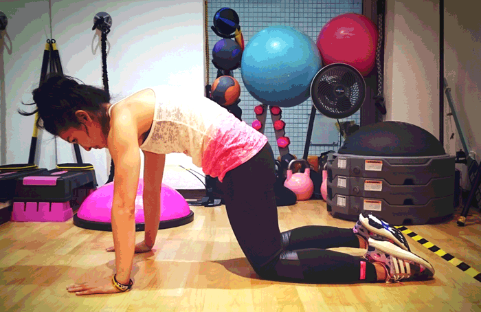 ○吸氣時將背拱起如貓咪,核心腹部肌群收緊。