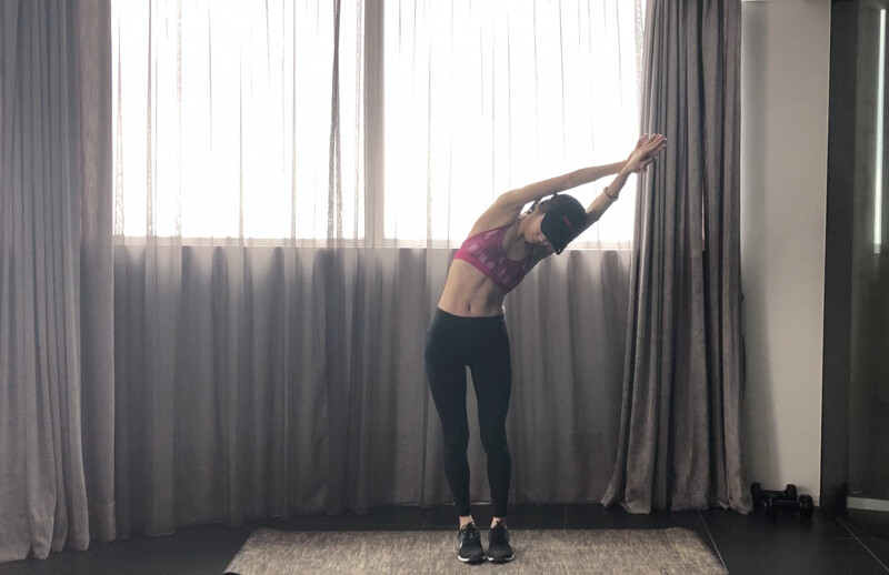 步驟3:收緊核心群組和挺直腰背,然後向左扭腰,維持動作5秒鐘,然後返回原來位置。重複動作1分鐘。