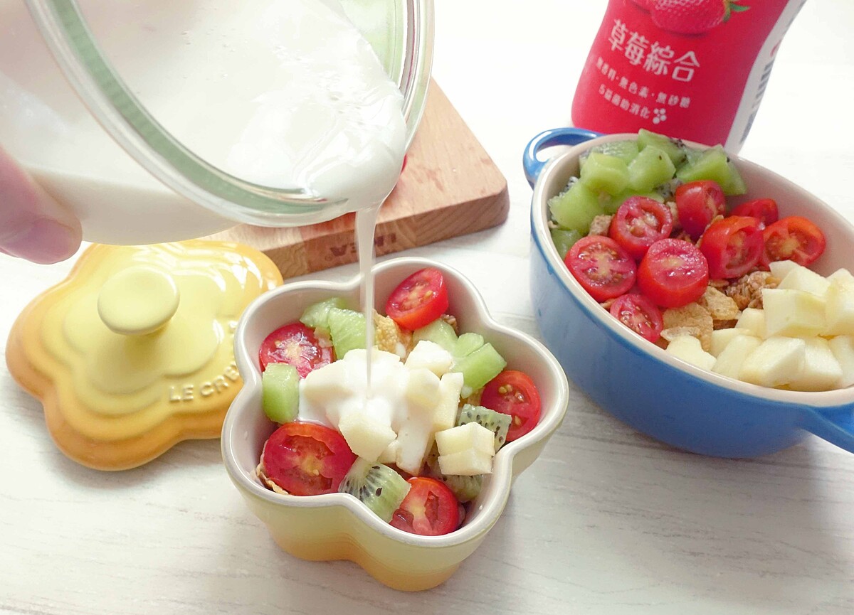 食材使用了光泉 草莓綜合優酪乳+麥片+奇異果+小蕃茄+蘋果