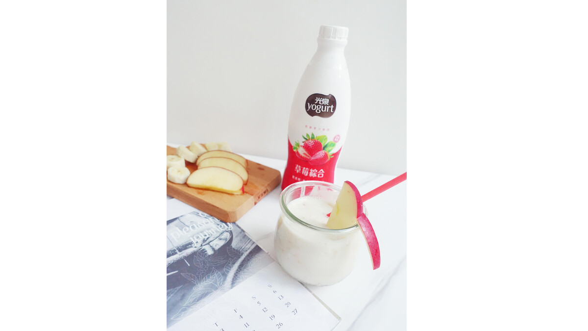 食材使用了光泉 草莓綜合優酪乳+蘋果+香蕉