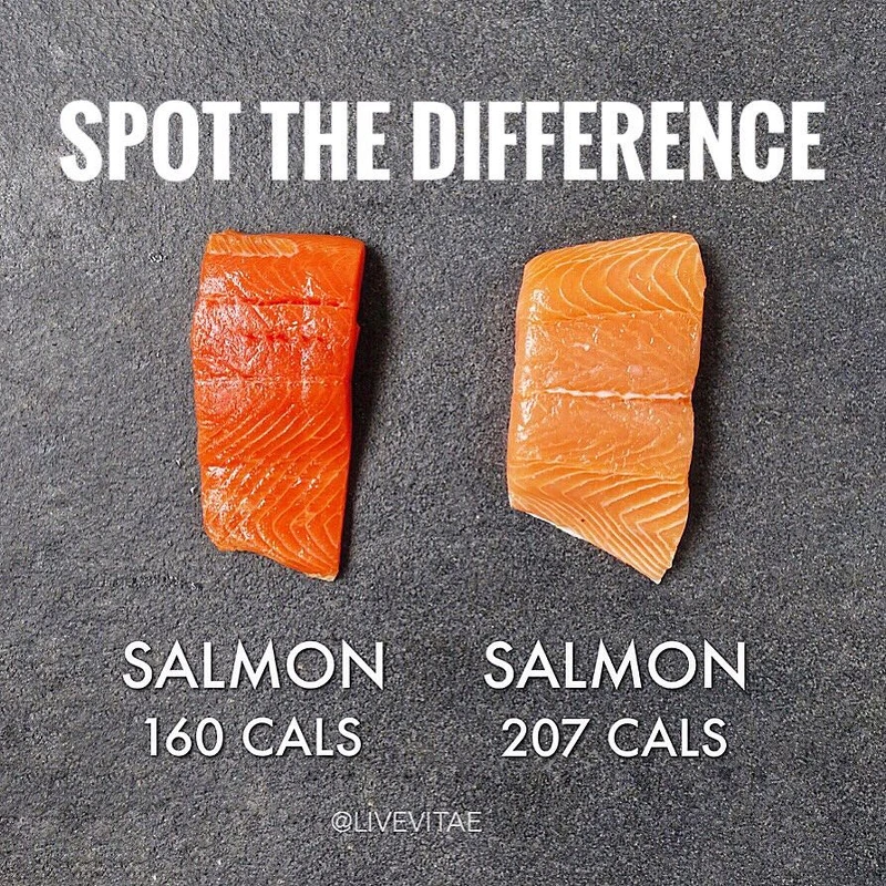 三文魚含有大量優質蛋白、Omega-3及不飽和脂肪酸,是想瘦的人的恩物,不過大家也許不知道,野生三文魚比養殖三文魚含有更少的卡路里和脂肪,100克的野生三文魚含有160卡路里+及6.4克脂肪,而100克的養殖三文魚207卡路里及 13.1克脂肪,養殖三文魚脂肪含量整整多出一倍!除此之外,養殖三文魚的生活條件惡劣,圍欄中沒有移動空間,更容易接觸疾病,因此需要使用抗生素,最後會進入人類的身體,危害健康,所以盡量選擇野生三文魚喔。