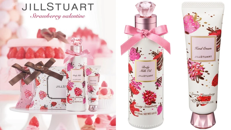 以草莓為主的「甜蜜莓果香調」,點綴香草、堅果、麝香、奶香,每次使用時都能感受到香氣四溢的甜蜜幸福氛圍。成分中同樣使用了富含維他命C的草莓果汁、覆盆莓淬取液、可可脂以及蜂蜜,加強保濕度,一共推出柔膚乳與護手霜兩個品項。瓶身也畫上草莓圖繪,宛如奶霜般的牛奶色澤般包覆瓶身,是成熟女生也適合的限定版設計。