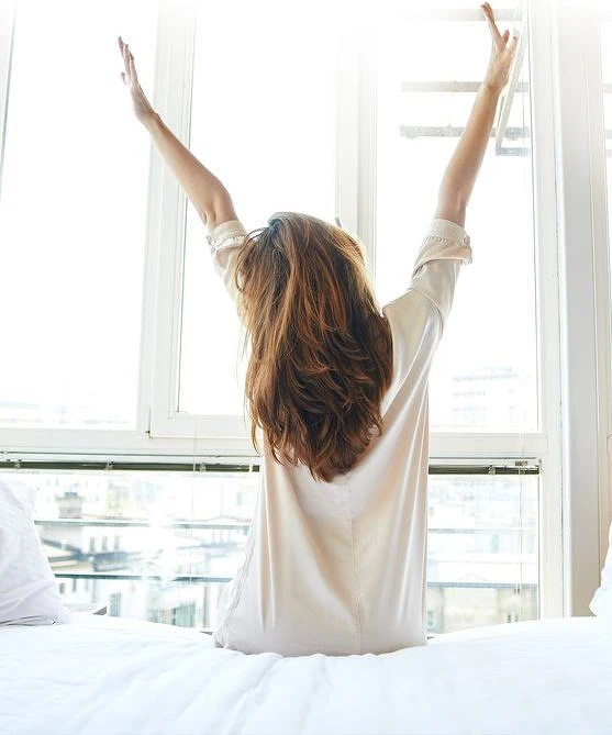 仰卧於床上,右腳向上舉,盡量貼近臉部,維持動作10個呼吸,然後換邊。