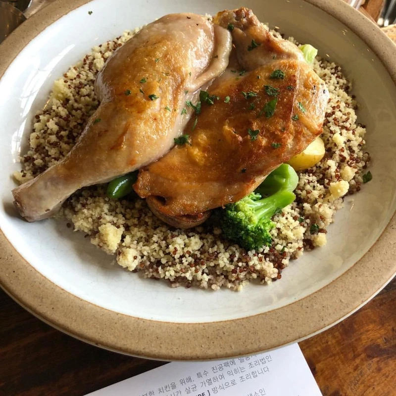 Jini的午餐通常會有1/3澱粉質(例如蕃薯)、1/3蛋白質( 鮭魚、鴨肉、雞胸肉、雞蛋或鮪魚)、以及1/3蔬菜(如羽衣甘藍);而晚餐大多數以雞胸肉、鮭魚、蝦或雞蛋沙拉為主。