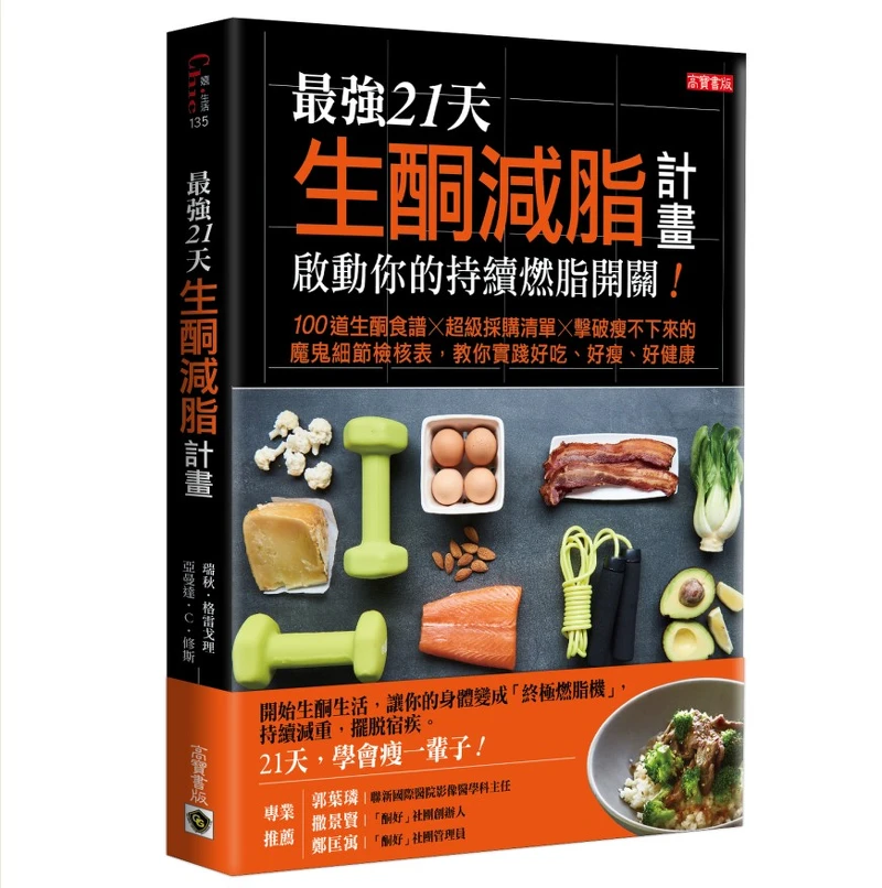 關於《最強21天生酮減脂計畫,啟動你的持續燃脂開關!》一書,內容包括了從理解生酮飲食的基本原則,計算個人所需的營養素,到訂定容易遵循的飲食計畫,列出專屬自己得每週超級採購清單;再來會運用每週身心檢核表,審視自己的生酮生活習慣、最後分享百餘道容易上手、營養成份標示清楚、可靈活變化的生酮食譜等等,是一本教會妳養成健康飲食習慣、並讓妳更深入瞭解生酮飲食的實用書籍。