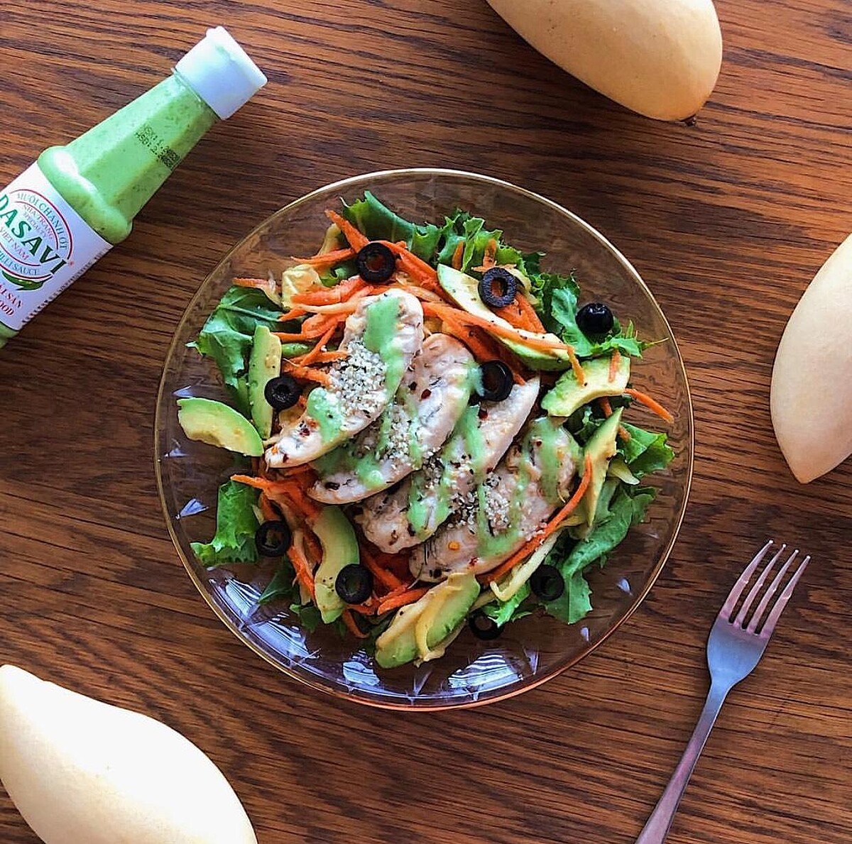 製作方法拋開綠色蔬菜沙拉的固定印象,沙拉也能成為豐富美味的菜餚。將喜歡的綠色蔬菜和一般的蔬菜混合,再添加雞胸肉或是雞蛋等高蛋白主食,就能吃得豐盛,又能釋放餓肚子的壓力。這時,放入帶鹹味的食材,如黑橄欖,就算不加調味料,也能吃得開心。調味料的話,可選擇東方調味醬 、義大利香醋、義大利沙拉醬,並且養成沾醬吃的好習慣。