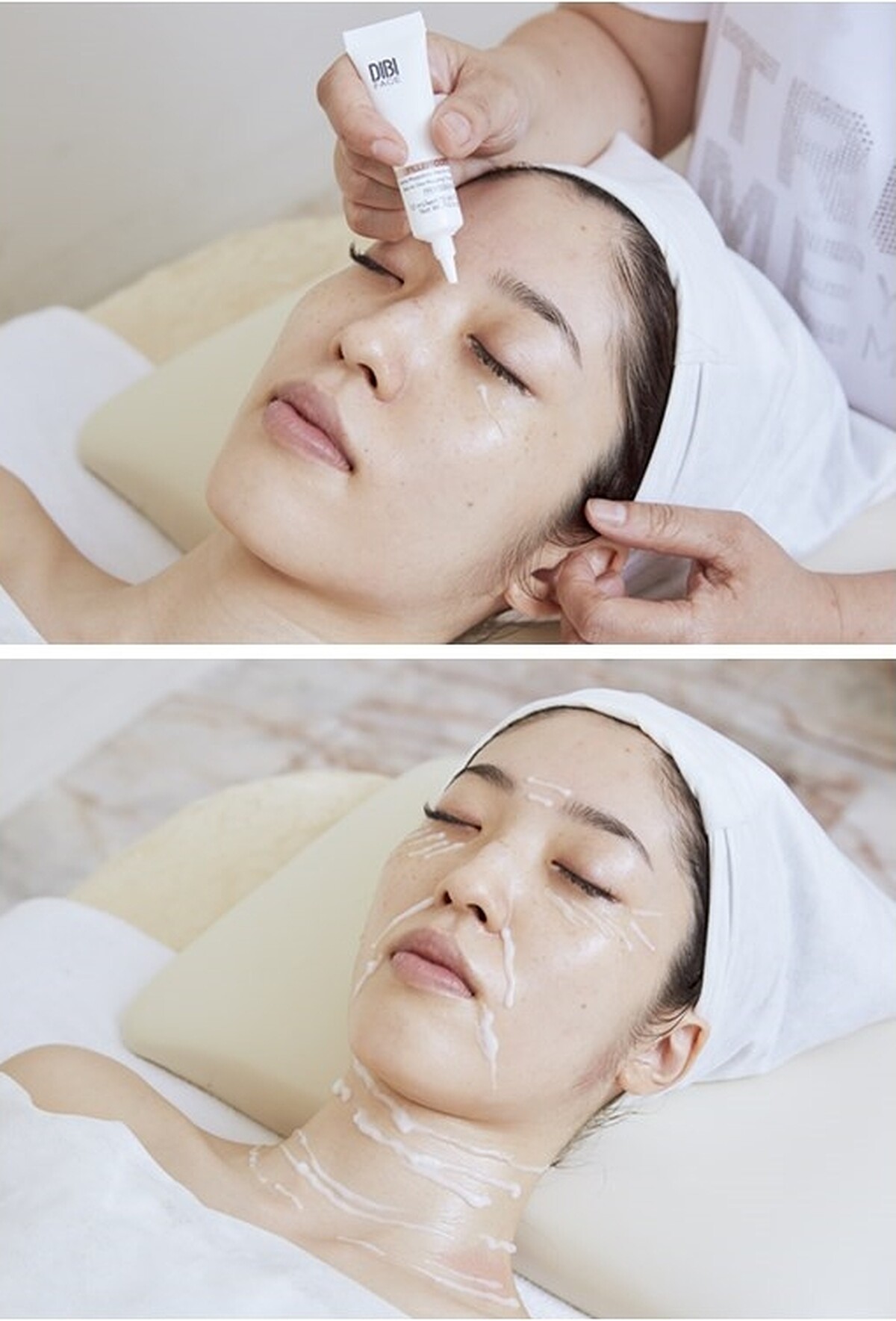 宋安:「從一開始的按摩引流+穴點按壓,就讓她壓力瞬間釋放,美容師的手技真的很厲害,讓我差點就秒睡…。接下來透過密集撫紋乳精華霜,針對眼下肌、抬頭紋、法令紋、頸紋厚敷時,當下雖然稍有刺痛感,但立刻敷上冰涼的面膜,瞬間覺得無比舒適,我印象最深刻的就是這片超大面膜,臉部、頸部、胸前一次敷足三大片撫紋微導珍珠面膜,這輩子還沒看過這麼大面的面膜,20分鐘的面膜時間,也是我獨處的時間,可以好好的放鬆自己,讓撫紋乳精華霜徹底被吸收。」