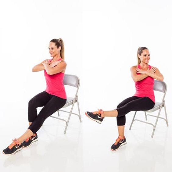 不要把整個屁股都坐在椅子上,只要坐椅子的1/2處即可,然後以基本的坐姿做好,腰背挺直,右手置於椅背,左手置於右椅側,上半身向左扭轉,做完之後換邊做同樣的動作。重複5次,這個以上轉身動作不但可以幫助減掉小肚肚,在轉動的過程中還能緩和肩頸和背部痠痛。