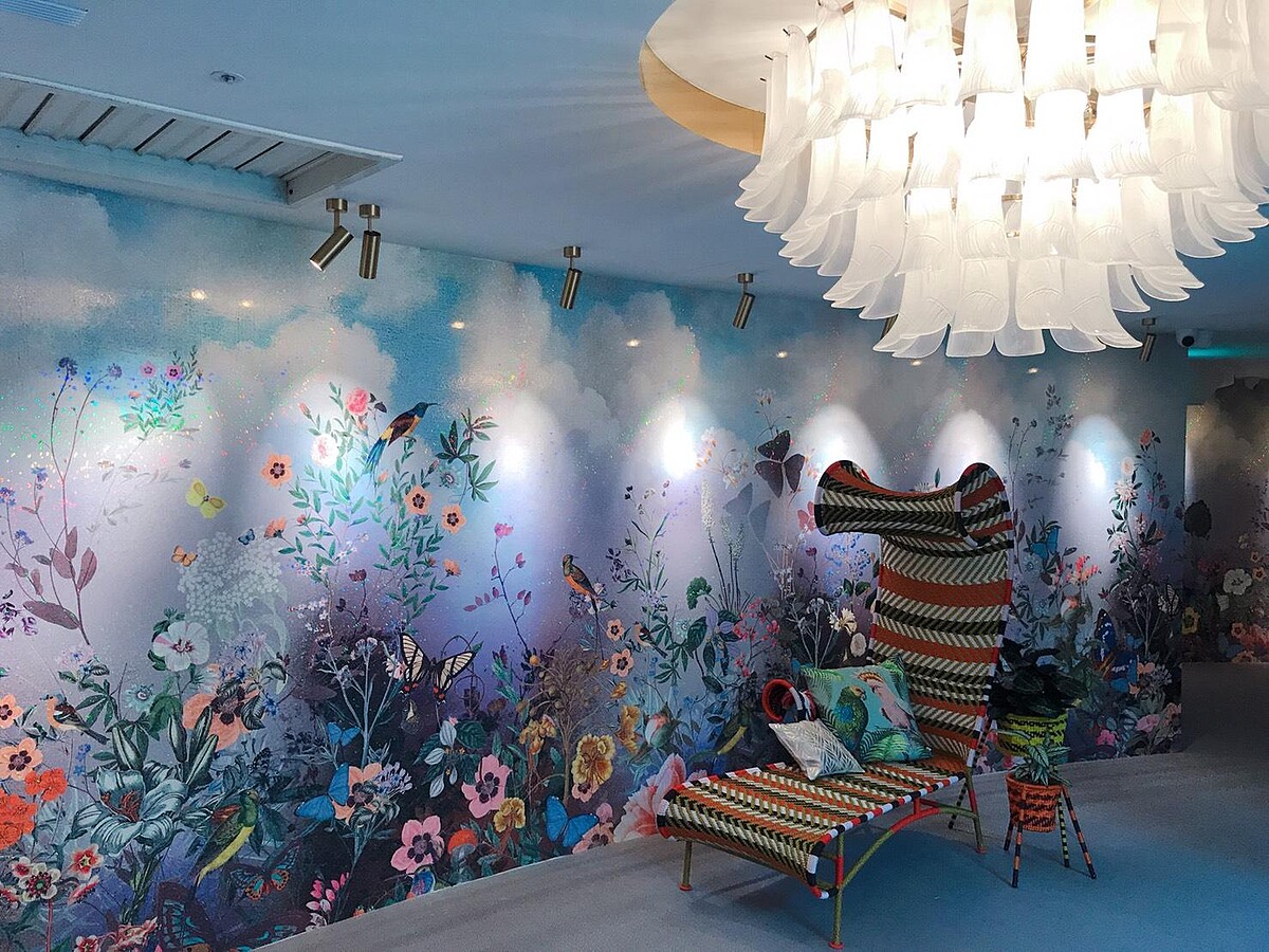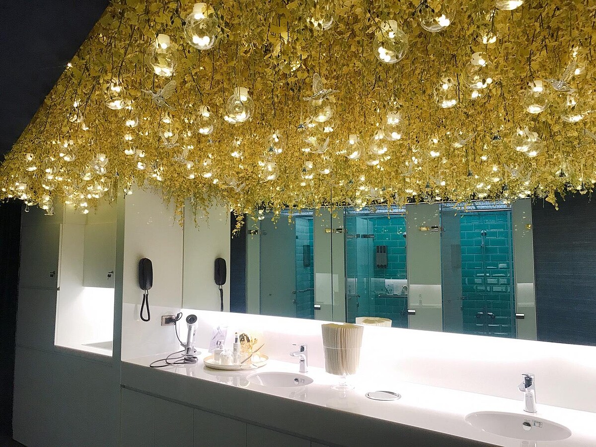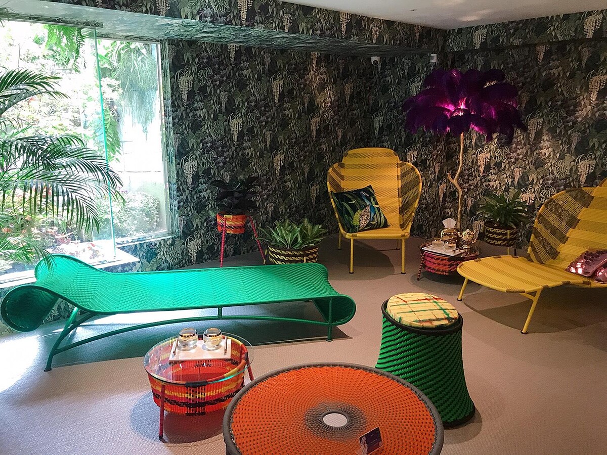進到SPA中心後,休息區被佈置的猶如綠意盎然的花房,又有幾分叢林放鬆的氣氛。值得一提的是每張椅子都充滿巧思,品牌希望顧客在體驗深層飆汗活絡身心後,能徜徉在知名義大利設計師 Moroso高規格的品味傢俱作品中,享受高彩度高飽和的現代藝術風格,讓感官一起做SPA,與閨蜜來場真心話午茶或溫馨夜。