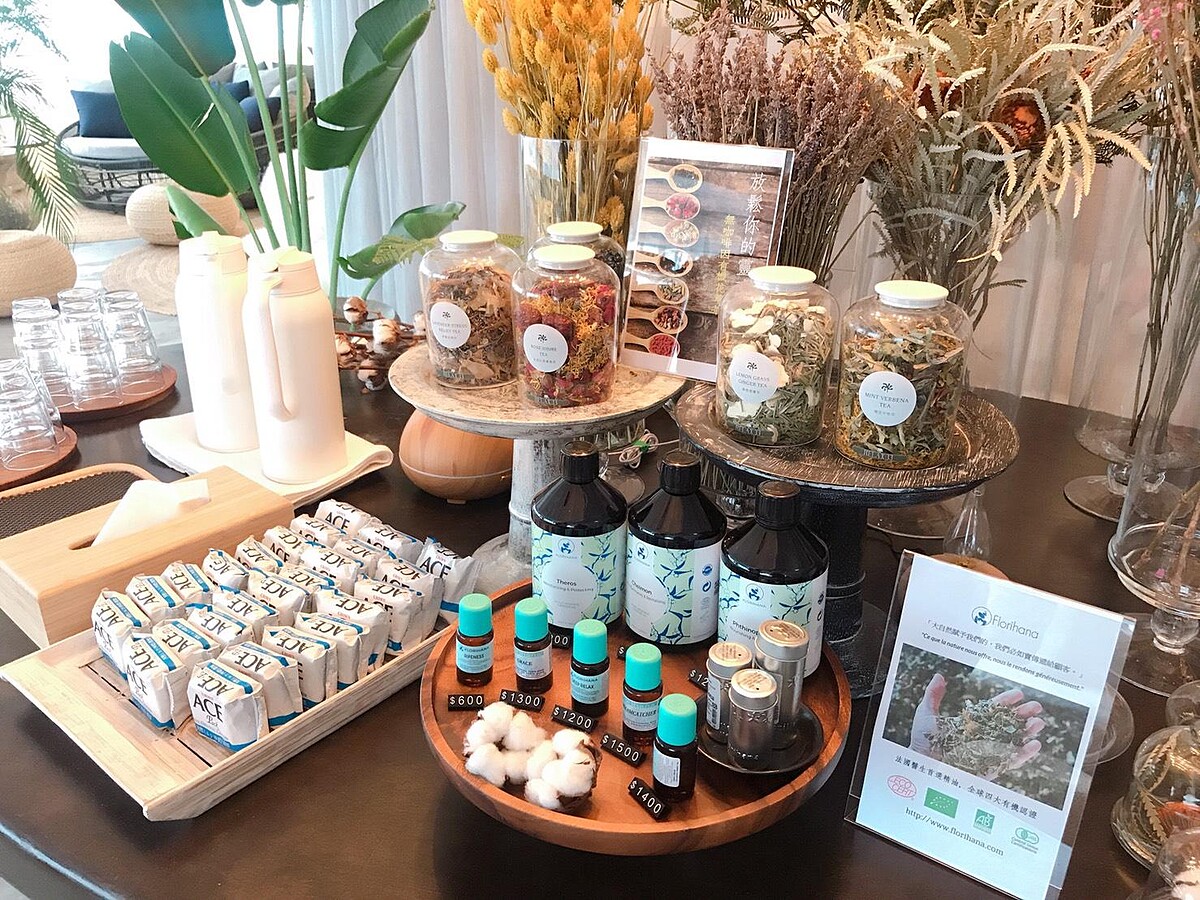 有機芳療的精油採用全球四大有機認證的法國Florihana品牌,針對深層肌肉放鬆、五種精油在情緒與心靈上的緩解也別有功效。