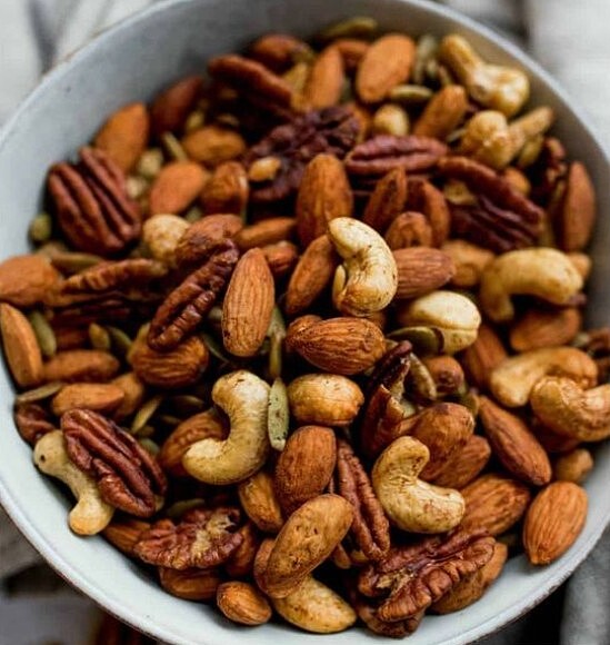 堅果能拉長妳的飽足感時間,而且它們含有不會增加卡路里的好脂肪,一般堅果是良好的營養源,能夠幫助素食主義者燃燒脂肪。同時堅果充滿了Omega-3脂肪,增加新陳代謝力。