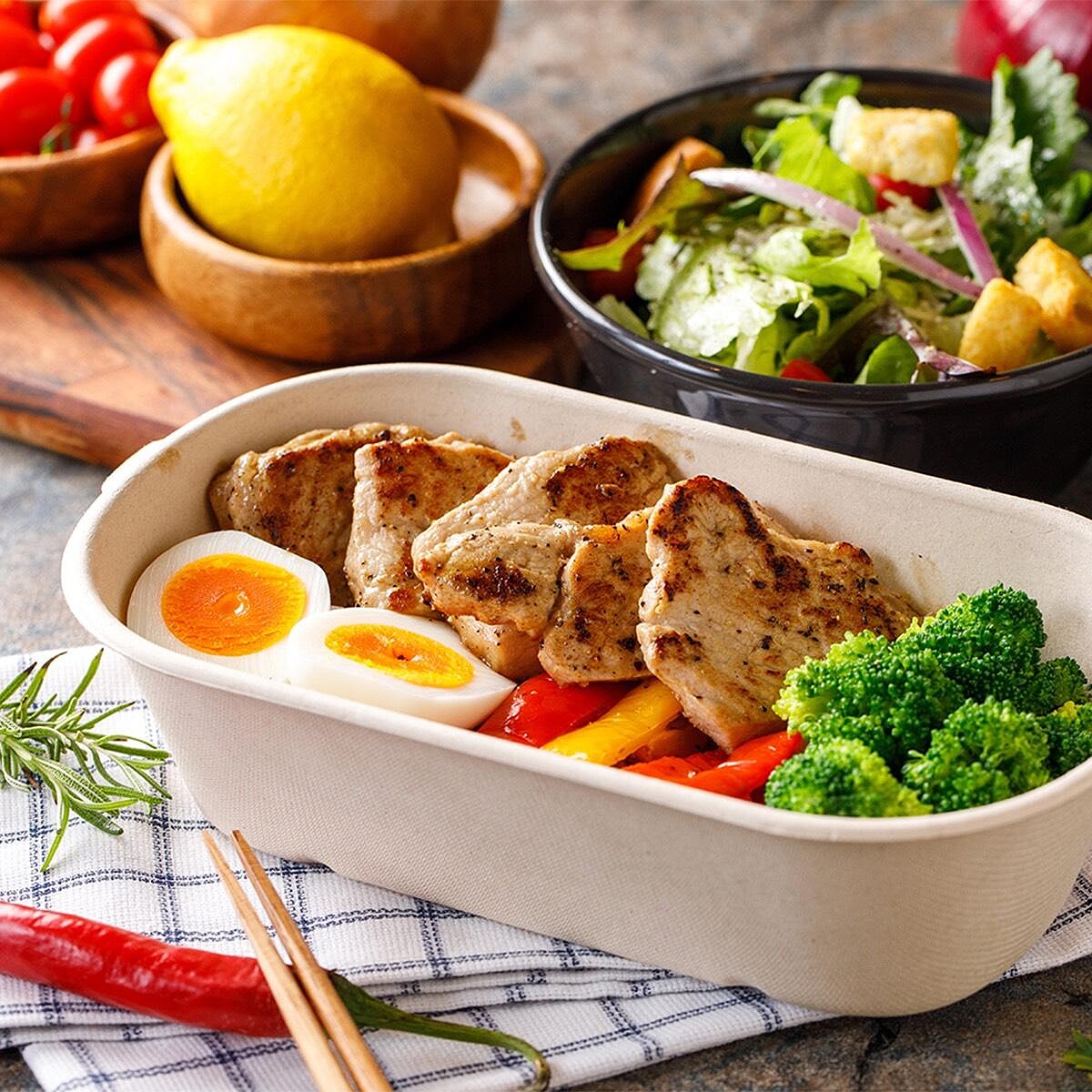 嚴選新鮮豬肉配上主廚秘醬醃製,每日市場親自嚴選上好時蔬,高規格優質一等鮮蛋,祕魯有機藜麥與米飯搭配。 NT280