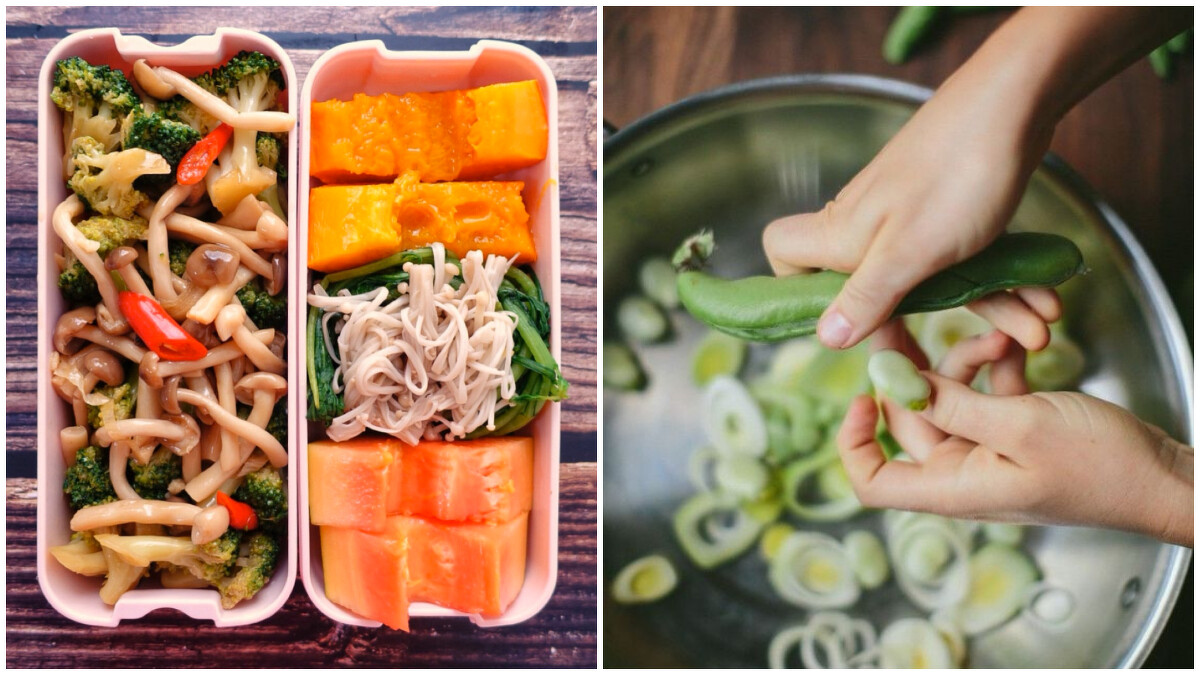 DAY1-花椰菜炒雙菇+南瓜+茼蒿+金針菇+木瓜