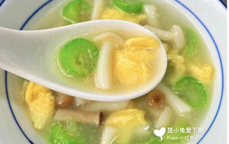 菌菇,雞蛋,絲瓜,蔥薑,鹽,雞精、芝麻香油(不喜歡的話可以不放)