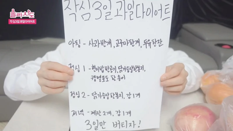 今年1月開設了個人YouTube頻道「솔라시도 solarsido」的MAMAMOO成員頌樂(Solar),日前在平台上分享自己親測的「3日水果減肥餐」,結果她在3天之內瘦了2KG,現在就來看看這份早午晚菜單吧!