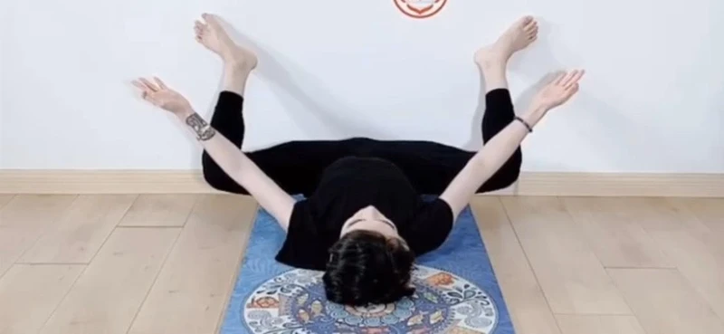 大小腿呈90度彎曲,雙臂抵住膝蓋內側,維持動作靠牆10分鐘相當於跑步2小時,是女性睡前的滋養體式。