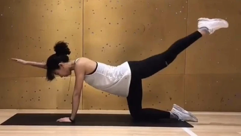 挺直腰背,盡量穩定身軀,向後抬腿,後抬腿可以鍛鍊到我們的臀部肌肉,拉回骨盆正確的位置。