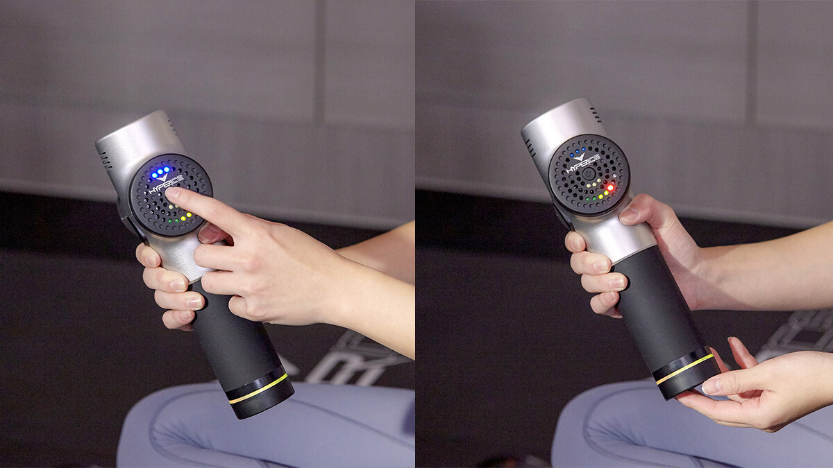 這就是讓M編最最激推的款式,擁有最高科技無線震動的按摩裝置,擁有三段速的控制功能,每分鐘提供高達3200次震擊,可以針對身體不同部位、沾黏的肌筋膜進行放鬆,並增加關節可活動的範圍、促進血液循環及喚醒僵硬緊繃的肌肉群,可以邊按摩邊觀察全心壓力感測器的三段指示燈,方便確認按壓力道有沒有精準。