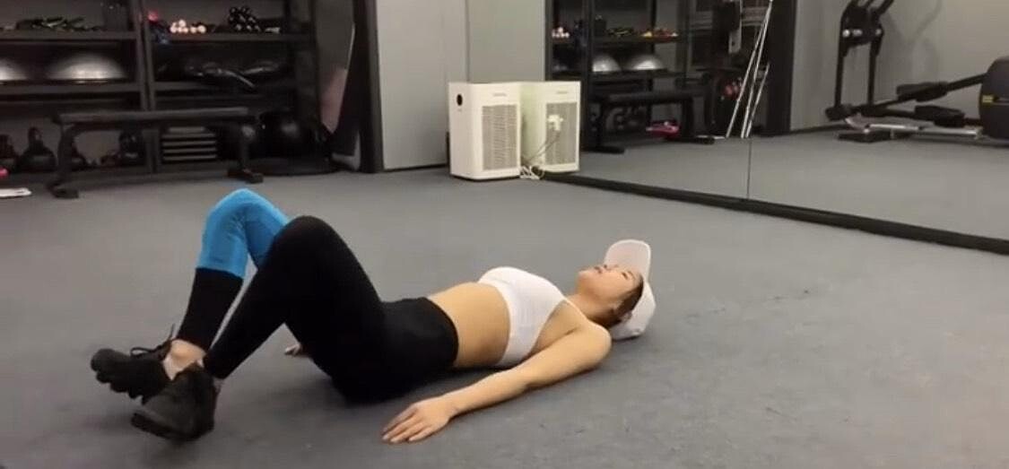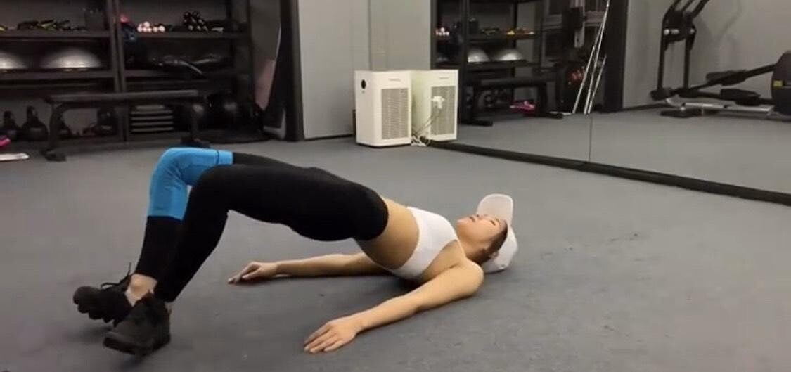 訓練大腿外側及臀部,改善臀部兩側凹陷,曲膝90度,腹部收緊,臀腿同時使力,呼氣往上抬,使臀部發力收縮,注意不要轉腰部。