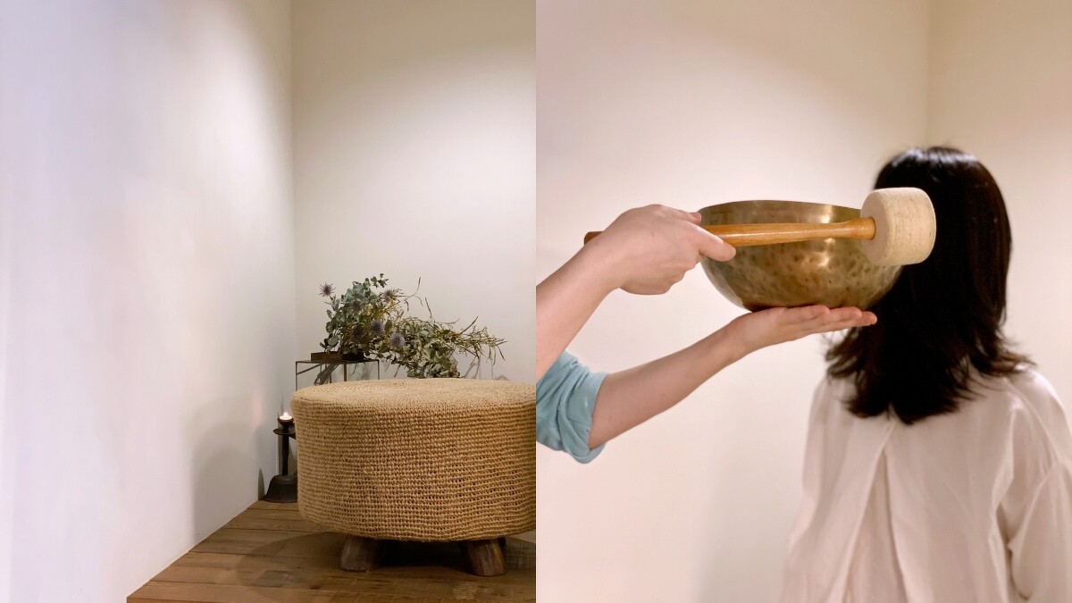 最特別的是,在按摩開始前,古芸香邸還有「靜心」時間,會在店內一個小角落裡進行精油聞香以及頌缽,藉此讓心情平穩,更能好好享受接下來的按摩舒壓,這也是古芸香邸強調的五感體驗。