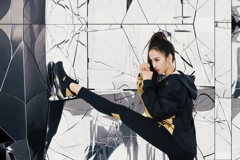 PUAM先前釋出代言人蔡依林全新大片,黑金配色的運動服搭配同色系的LQDCELL Shatter新款球鞋穿搭,配合天后在鏡面空間充滿殺氣的眼神,讓這組照片成功讓人留下深刻印象。
