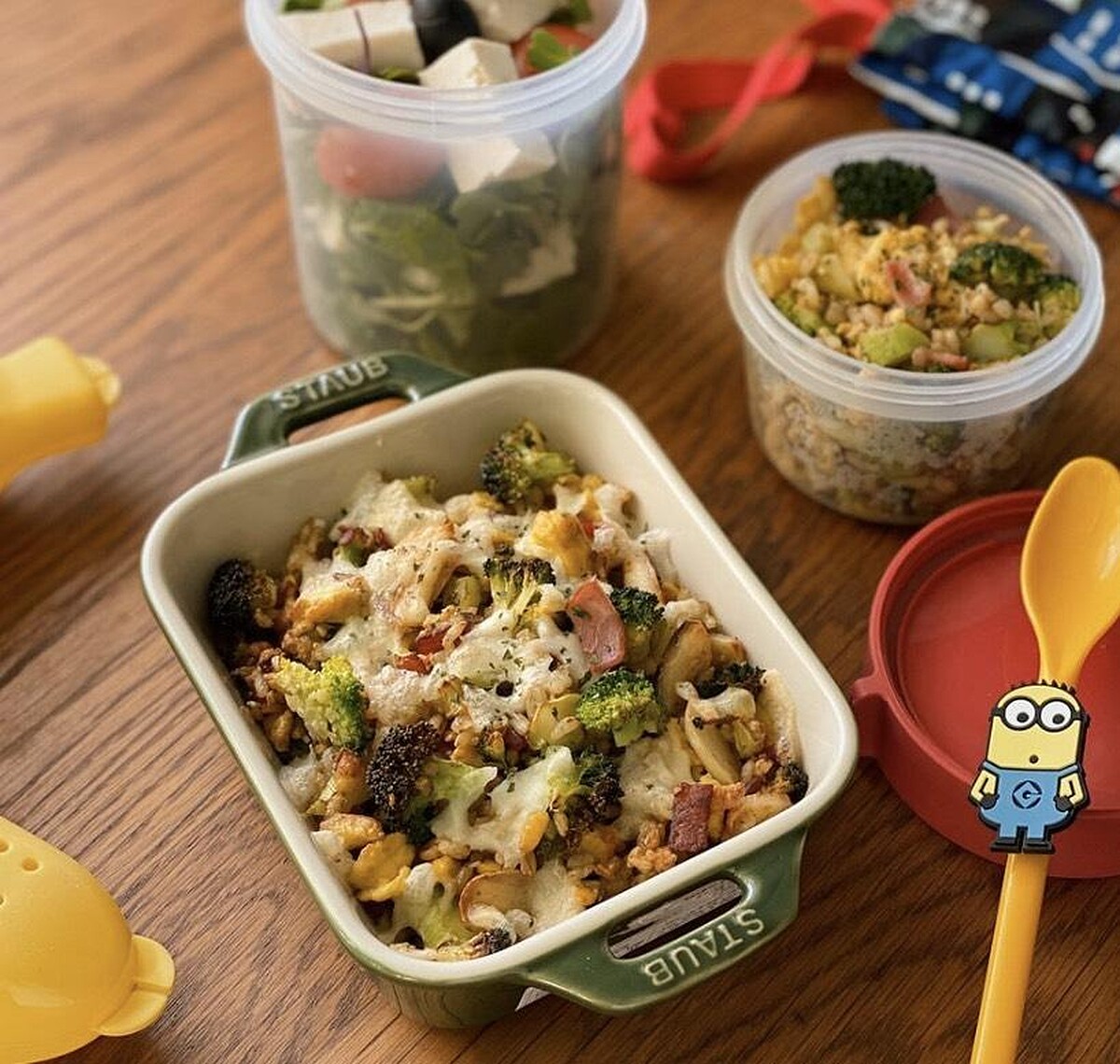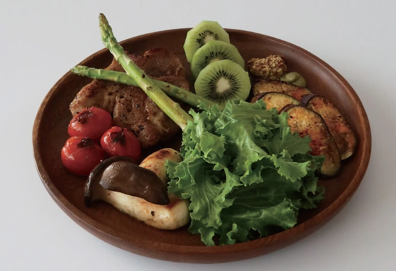 吃飯的時候,把料理美美地擺成一盤,既能知道自己吃了多少分量,又能感受到餐廳般的服務。帶點咬勁和濃醇味的豬頸肉和各種蔬菜烤成美味的金黃色,搭配酸甜的奇異果,絕對不輸高級餐廳。