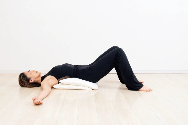 練習時,只需要仰躺下來,雙膝立起後夾著抱枕,將臀部抬高「一公分」即可。 這項零位訓練的最大重點,在於能夠鍛練到「核心肌群」。但是,想要維持這個「良好姿勢」,身體內部的肌肉必須一直撐住才行,此時就得靠「核心肌群」肩負這項職責。