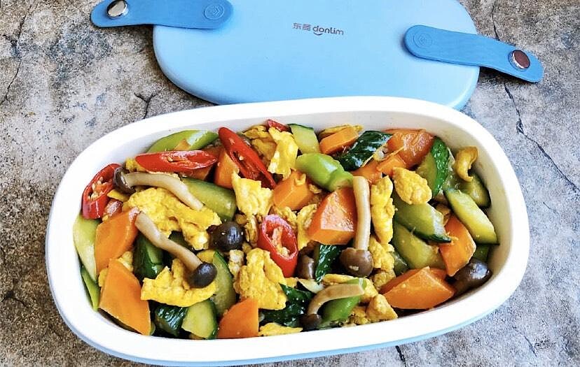 1.所有蔬菜洗凈切好,雞蛋放碗裡攪散,熱油炒蛋,炒好盛出來備用。