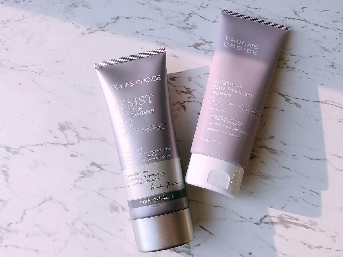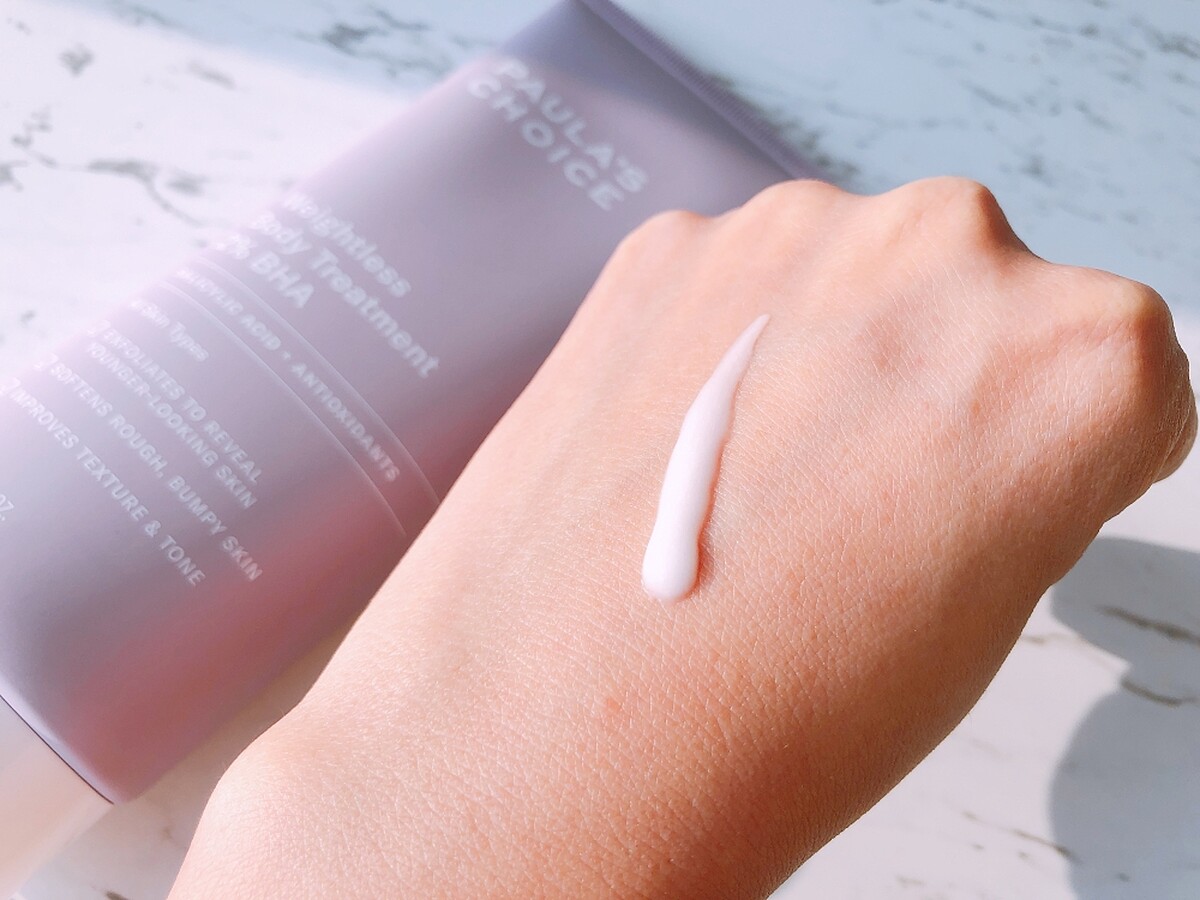 寶拉珍選2%水楊酸身體乳質地較清爽,另一款同樣含有酸類成份的身體乳「10%果酸身體乳」則比較滋潤。2%水楊酸身體乳