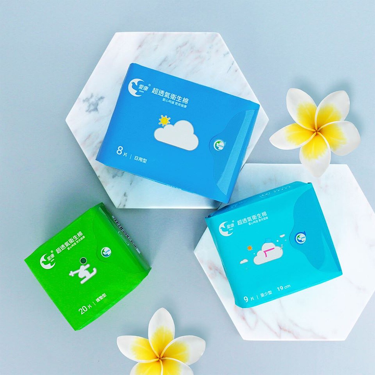 愛康衛生棉擁有七層結構,涼感的關鍵就來自當中的「好芯涼」芯片,以薄荷、茶樹精油及深海礦物元素,在散發涼感之餘還有淡淡草本香氣。
