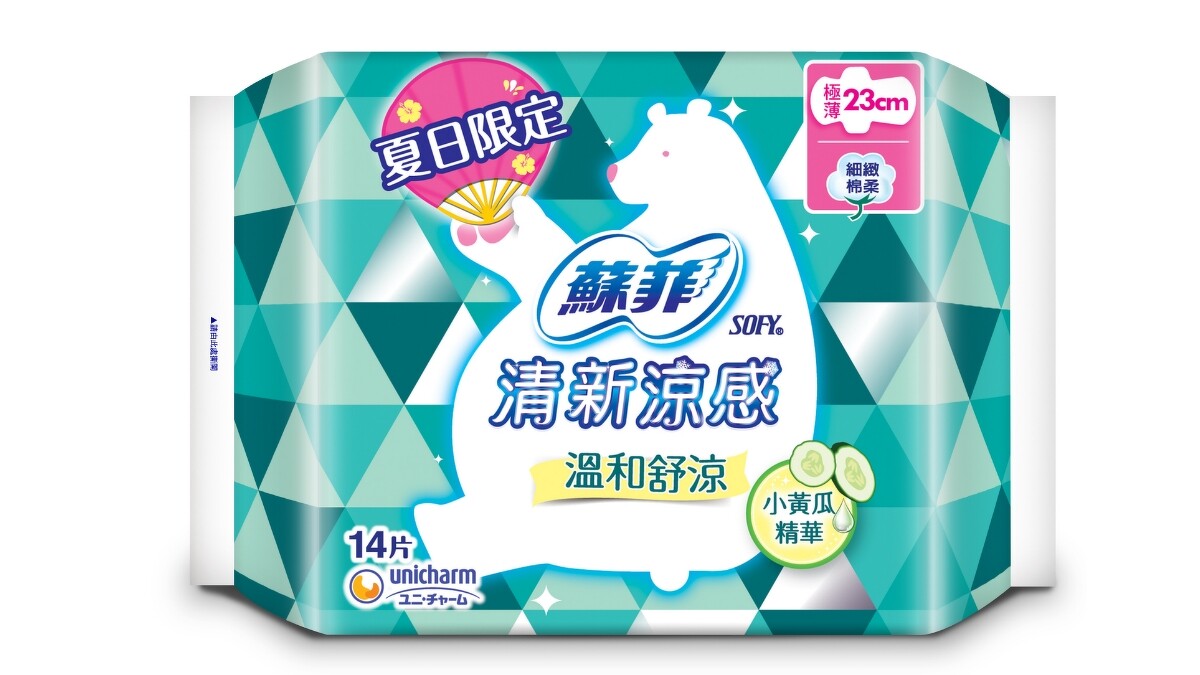 另一款綠色包裝的則是「溫和舒涼」,添加小黃瓜精華。涼感是慢慢釋放的,同樣能降低悶熱,對肌膚更溫和少刺激。衛生棉本身則採取0.1mm極薄設計,用起來更沒有異物感。