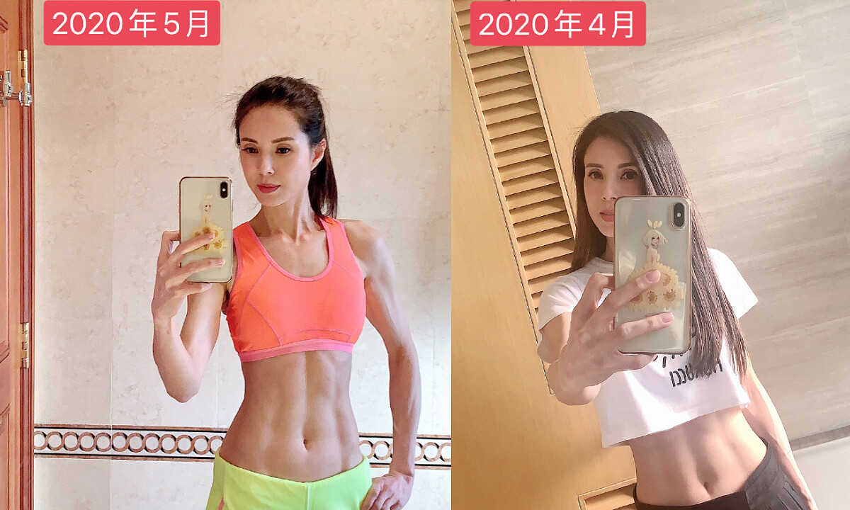 日前她更在IG上表示:「經過十多天不間斷的恆常訓練,居然意外地出現六塊腹肌,不管多少歲的你和多少歲的我,只要努力,沒有做不到的。看,其實不僅不影響美感,還能令拍攝效果更好!」