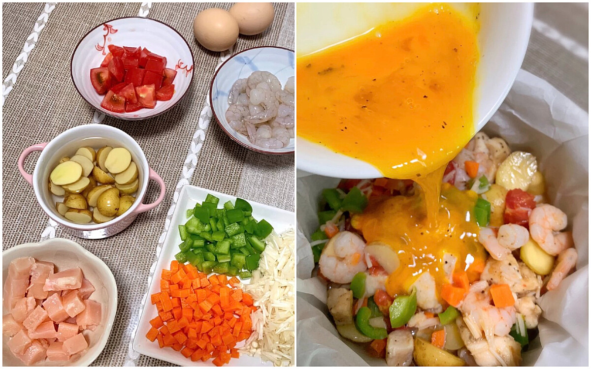 雜蔬雞胸肉蝦仁烘蛋做法