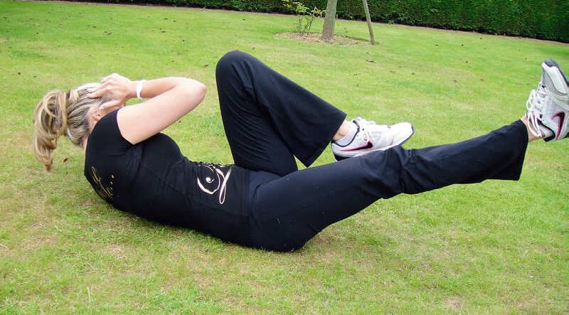 • 姿勢:肘部愈靠近對側膝蓋,愈能緊縮腹斜肌和腹直肌。兩肘之間應保持距離。