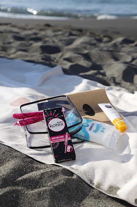 另外,Johanna與Patty的推薦的玩美包裡,除了預防大姨媽突然來臨壞了玩興必備的「Kotex導管式衛生棉條」外,還有醫美級開架防曬「妮維雅全護清爽防曬隔離乳」,與擦去汗味、讓肌膚恢復清爽的「舒潔淨汗爽身濕巾」啊!