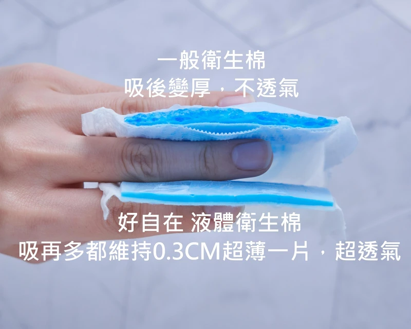 一般衛生棉不管原本的設計有多薄,在吸收經血後,吸水珠珠會膨起,衛生棉會變厚,這時妹妹就會感到異物感和悶熱不透氣;而好自在液體衛生棉,採用獨家液體吸收材質,吸再多都維持0.3CM超薄一片,不管量多量少用起來都超輕薄舒服的,此時再度讚嘆,Dizzy果然是時尚選物Queen,這麼好用的衛生棉,不能只有我知道阿~~