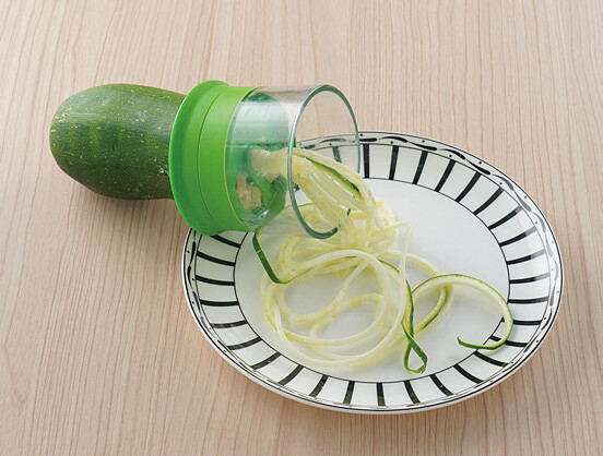 2.利用蔬果削鉛筆機或刨絲刀將櫛瓜削成細長條狀,做成櫛瓜麵。