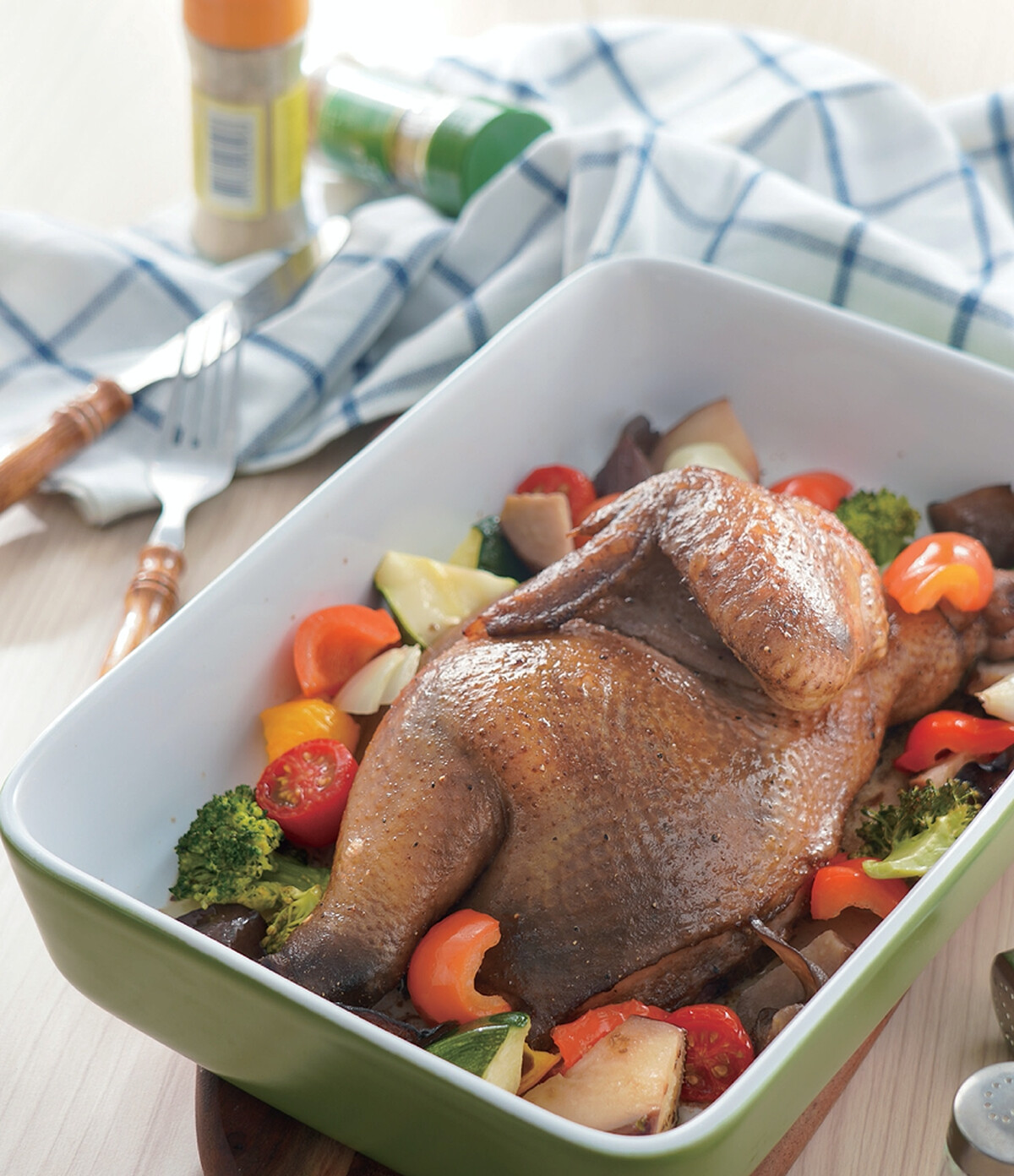 Tips:如何判斷雞肉是否熟了?可用竹籤穿刺雞腿跟雞身附近最厚的地方,流出清澈雞油就代表熟了。