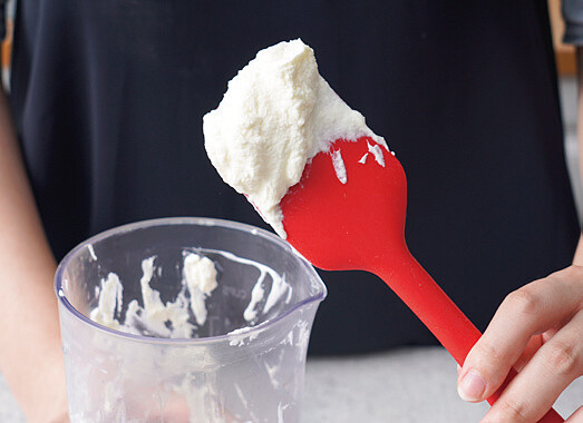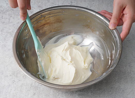 4.將步驟2、3的材料混合拌勻至滑順、均勻,製作好乳酪霜。