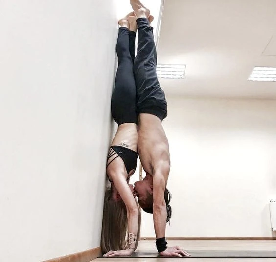 倒立運動好處多多~可以促身體循環帶入含養血液,更有助於器官平衡,達到安定心神得效果,運動之餘別忘了給眼前的另一半深情的吻。