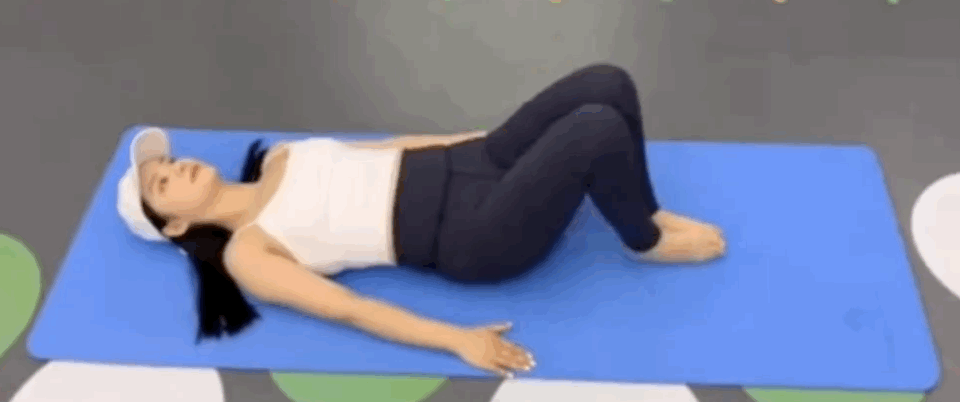 躺於瑜珈墊上,雙腿曲膝,運用大腿內側力量往外側開,腳掌併攏,此動作可改善假胯寬,每組20次共做3組。
