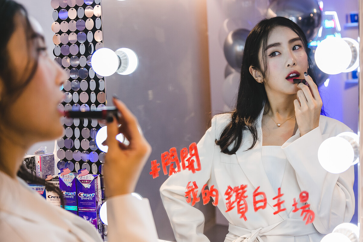 瞧,有了Crest為自己打造鑽白美齒,什麼唇色都能完美駕馭!