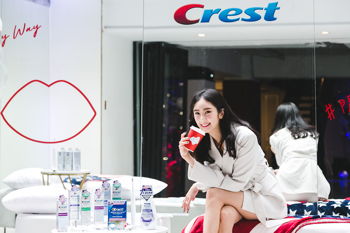 女星&時尚部落客舒子晨也來參加Crest X Jolin放閃Café活動!本身就是Crest鐵粉的她,對現場特別布置的紅唇沙發、鑽白放閃宣言標語超有興趣,直呼:「真是很滿足的一天,產品好用,派對也超精彩!」