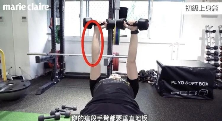 2.一手拿啞鈴,另一手可以扶著你的胸口,這樣可以知道在動作的時候有沒有使對力氣、訓練對肌群。