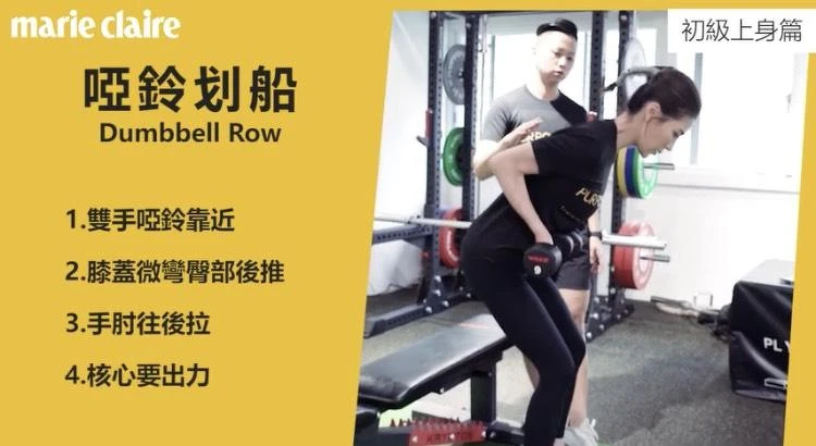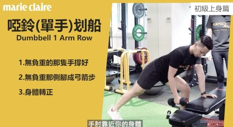 動作3:啞鈴(單手)划船 (做10下,共3組)