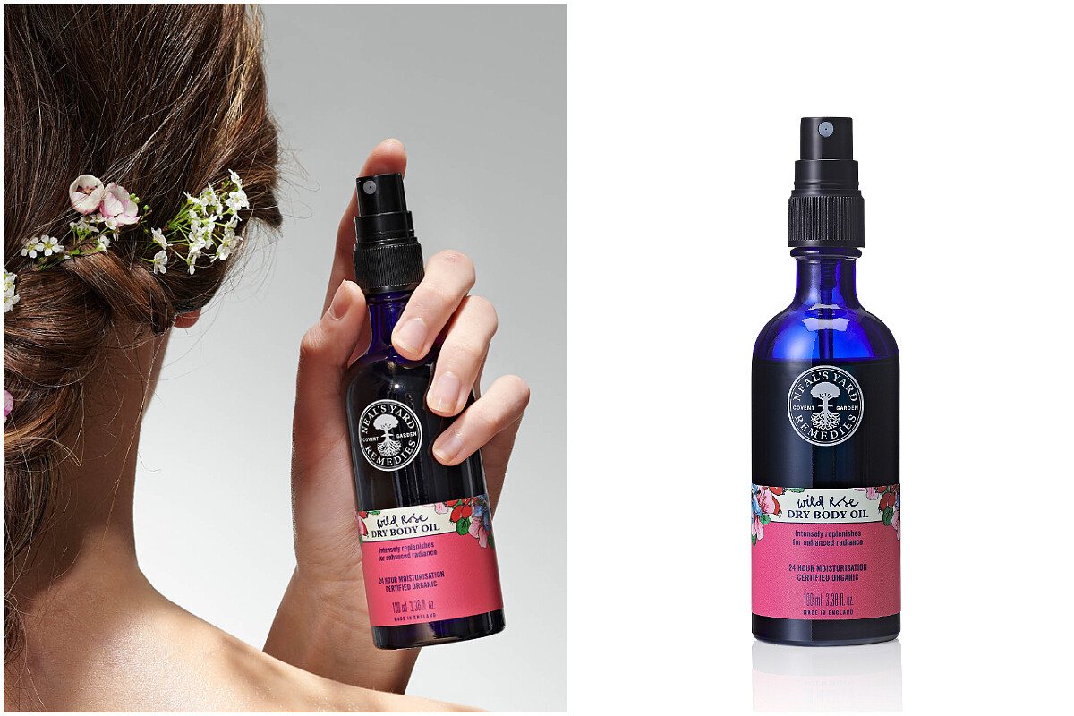 令人驚豔的吸收度!蘊含有機野玫瑰果油與橄欖葉萃取,使用後肌膚清爽、觸感如絲緞般光滑清透。富含豐富的抗氧化成分,並能深度修護潤澤肌膚。亦可使用於護髮,帶來柔軟、順滑效果,提升秀髮的韌度及光澤。噴頭設計用量好控制。搭配野玫瑰亮采身體乳使用,加倍提升皮膚光澤及修護力。100ml NT1,600。