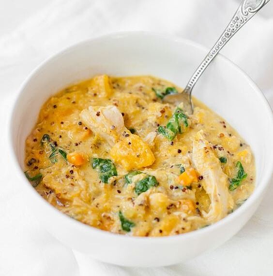 /食材清單/南瓜一顆、大蒜兩瓣、洋蔥半顆、去骨雞腿肉一盒(約220g)或板豆腐一盒、少量橄欖油、雞高湯一罐、鹽與胡椒適量。