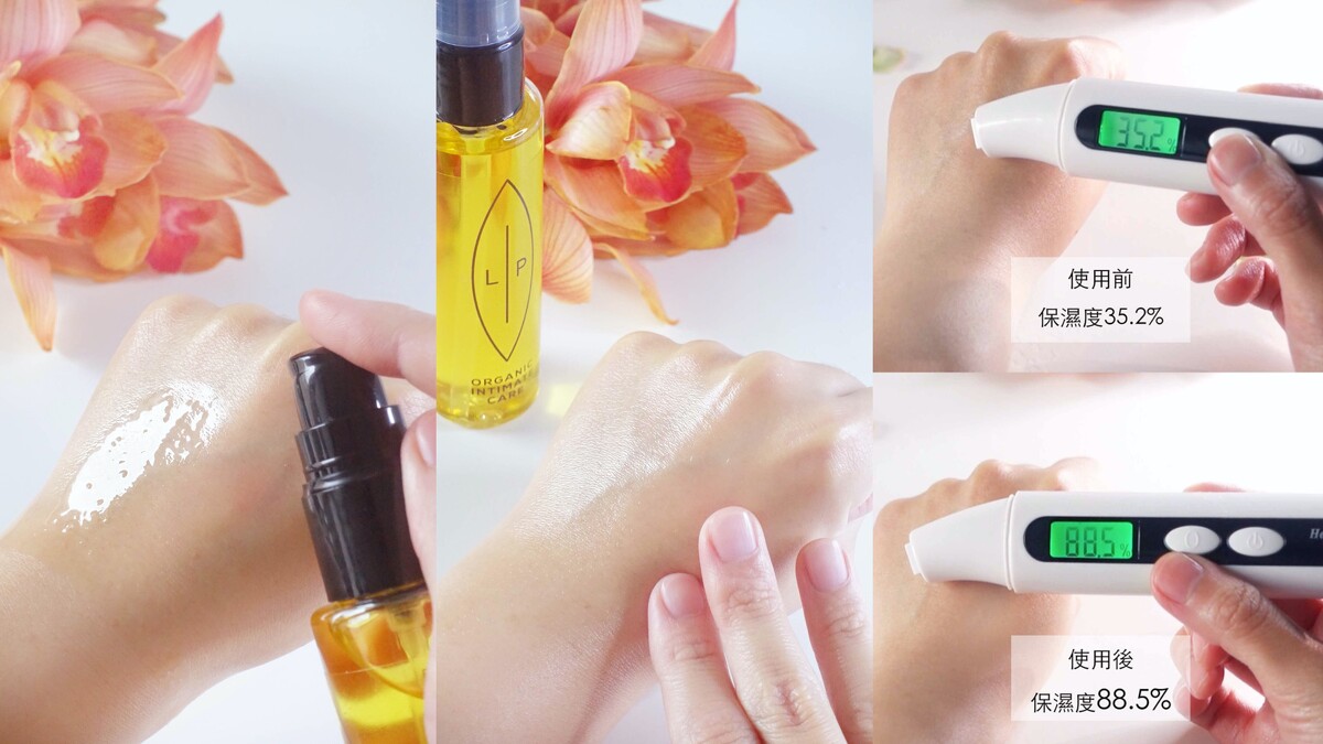 再直接在手背上測試使用前後的保濕度!使用前後保濕度飆破天際直接飆升53%,根本是大神等級的保濕修護力!保養短時間就超級有感,妹妹再也不「乾」尬了,私密肌不只健康穩定還又細緻又滑嫩,難怪小金瓶永遠都缺貨中…真的一點都不誇張!